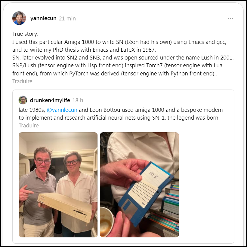 Yann Le Cun [(French) Chief AI Scientist at Meta]: "True story. I used this particular Amiga 1000 to write SN"